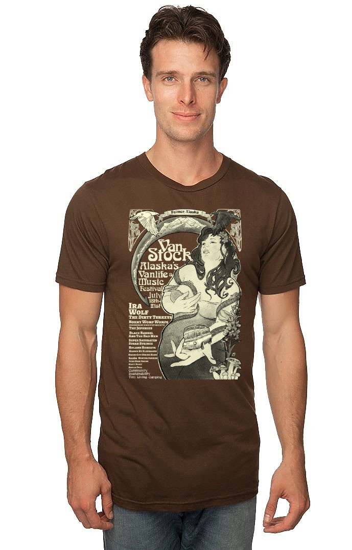 Hand screen printed by the Vanstock Team. Featuring our logo on the front breast and the 2025 poster on the back. DUE TO THE NATURE OF SCREEN PRINTING THE DIGITAL MOCK UP VARIES SLIGHTLY FROM FINAL PRODUCT (One color print in butter yellow color. No Black ink*)